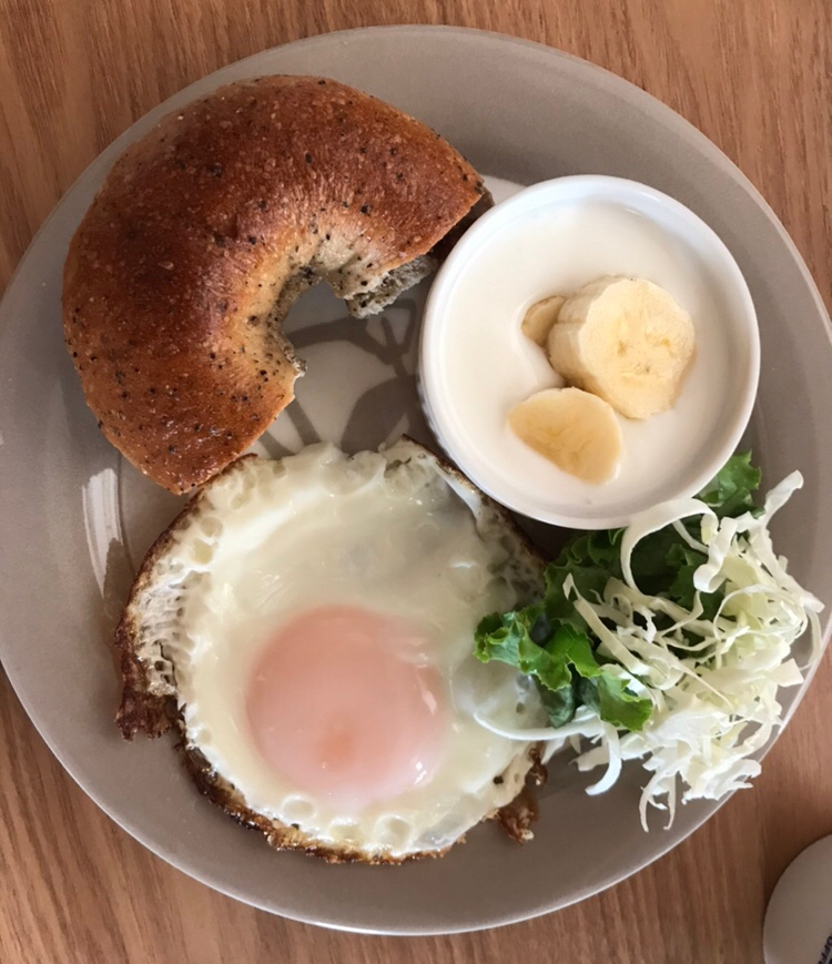 ベーグルとバナナヨーグルト 目玉焼きの朝ごはん レシピ 作り方 By ボンド子 楽天レシピ